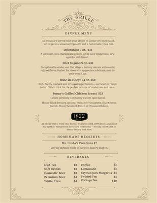 Dinners start at $25.