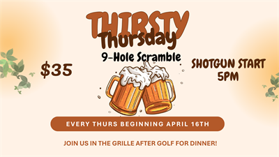 Thirsty Thursday 9-hole golf scramble at The Course at Pillow Springs.